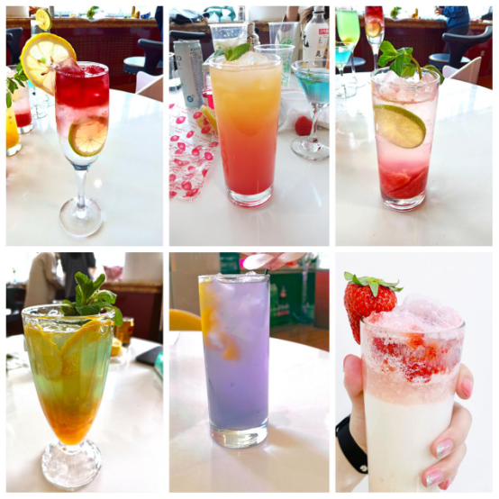 通过调制,做出来的鸡尾酒千奇百怪,有的不仅色彩丰富而且口感颇好,有的其貌不扬但很好喝,有的非常漂亮但口感辛辣........大家的创造力都被激发了,很多同学一边调制一边查资料学习,不停的实践,最终调制出美味漂亮的鸡尾酒。经过指导成功调制出长岛冰茶、血腥玛丽、海洋之心等几款经典又颇有难度的鸡尾酒。