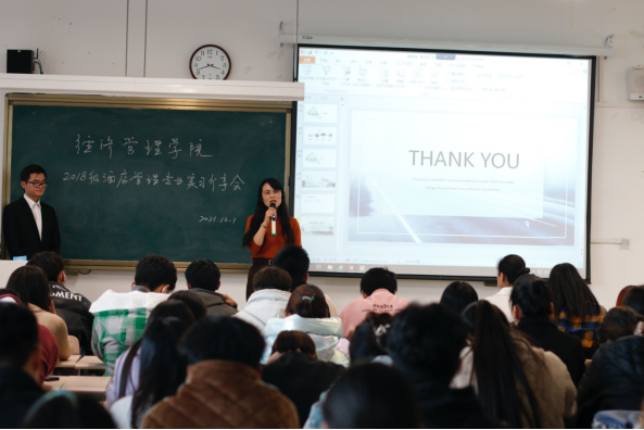 为增进各年级的专业沟通交流,帮助酒店管理专业同学明确就业方向,清晰未来目标,12月1日在东四202教室召开2018级酒店管理毕业实习交流会。全体酒店管理专业员工100余人出席交流会,出席会议的有薛华菊、张效科、陈洁、张媛钰等老师,2018级酒店管理班星显芳、彭称生担任交流会主持人。