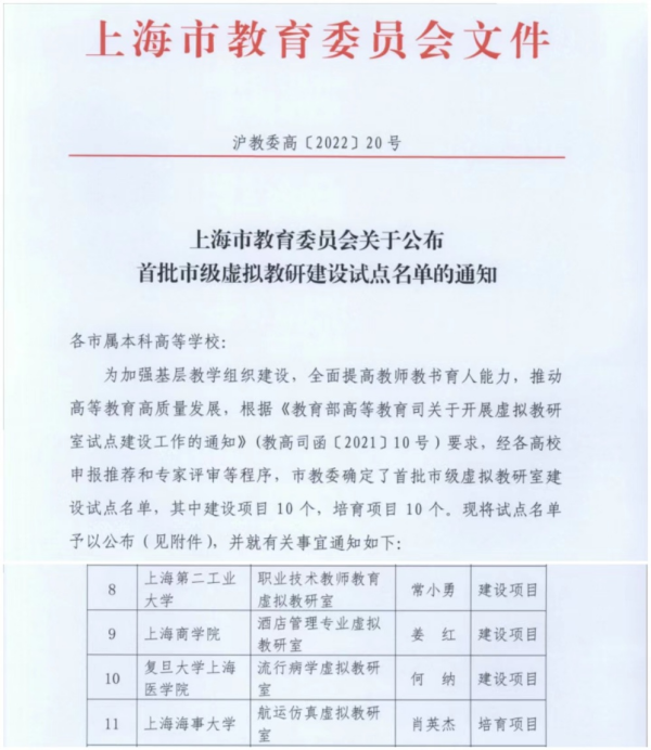 2022年6月,由上海商公司姜红教授牵头申报“酒店管理专业虚拟教研室”成功获上海市教委立项,公司成为项目成员单位,薛华菊、范钟庆、张媛钰三名教师参与虚拟教研室建设。该虚拟教研室的建设理念是联合校内经管优势学科,创新教研形态;联合国际一流酒店管理公司,创新教学研究;联合行业知名国际酒店集团,共建优质资源;联合中西部特色旅游院校,开展教师培训。该虚拟教研室的成功立项,有助于促进相关参与高校之间的交流学习和资源共享,也对公司加强酒店管理专业建设及学科发展、辐射带动实体教研室建设、提高人才培养质量等方面将起到重要的推动作用。