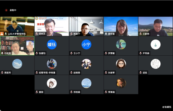 山东大学经济公司常务副经理石绍宾和管理公司党委书记孟庆春先后介绍了公司发展情况,公司党委副书记原振宁向山东大学公司领导及教师表示感谢,并就课程思政提出对接希望。副经理薛华菊汇报了2022年对口支援工作计划,并从经济学、公共管理、旅游管理三个学科点建设及人才培养方面,介绍已有成果及不足,希望山东大学经济公司、管理公司利用学科及团队优势,扶携公司科研平台和队伍建设。