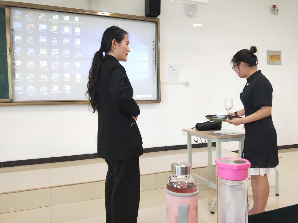 本次参加决赛的有经济、金融、人力资源管理、酒店管理、旅游管理专业5个专业12个团队组成,12个团队根据各自专业技能大赛要求进行10分钟的专业技能展示。经过三个小时的激烈角逐,公司专业技能大赛决赛结果揭晓,第一名乘风破浪队(17级酒店管理)以88.17分位居第一,尽管专业技能要求不同,但乘风破浪队以优雅的姿态,标准的英文发音,幽默风趣的情景模拟给评委老师和现场的观众留下了深刻的印象,获得好评。
