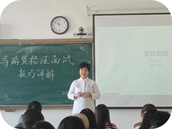 本次培训期间,李艳慧老师首先告诫同学们不仅仅是在面试,在实际的导游工作中也要得体大方,也要注意仪容仪表。其次强调要对导游词熟悉,对每次涉及的景点要充分了解。最后更是分享导游工作的技巧——要有“套路”,更要多带团积累经验,通过开场白加深印象,能够让旅程顺利进行。