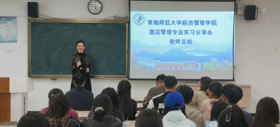 5位同学分享结束后,酒店管理系李艳慧、郭瑞等老师依次作总结发言。老师们首先对22酒店管理班全体同学的实习成果给予肯定,认为大家在不同岗位上都展现出了积极的学习态度与扎实的专业潜力,5位代表的分享真实生动,既有对工作细节的梳理,也有对职业认知的思考,为在场其他年级员工提供了宝贵的实践参考。